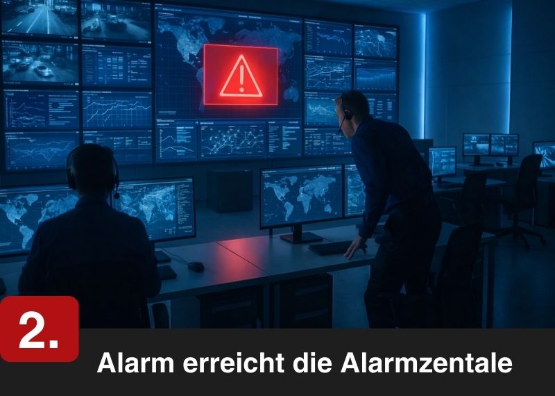 Die Alarmierung erfolgt durch unsere 24/7 besetzte Notrufleitstelle.
